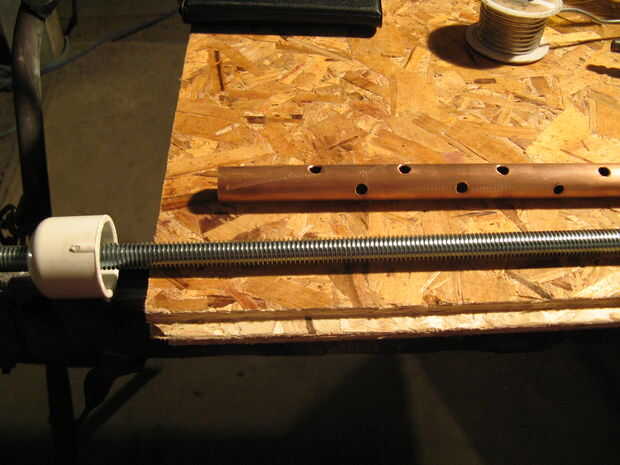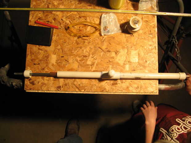 Bien, ahora tienes que deslizar la barra de zinc a través de la tapa correspondiente. Una vez que tengas hace entonces deslizar el tubo de cobre a través de la tapa correspondiente. Por último, pegamento de pvc la tapa de extremo de barra de zinc en el tubo de pvc, lado no importa. También pega el tapón de tubo de cobre hacia el otro lado. ASEGÚRESE DE QUE DESLIZAR EL TUBO DE COBRE SOBRE LA VARILLA DE CINC COMO LO HACES.