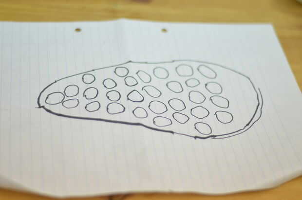 Para marcar aproximadamente donde irían las células en la batería, quité cada célula del papel de uno a la vez y dibujó un círculo en su lugar. Esto me ayudaría con el esquema en el siguiente paso.