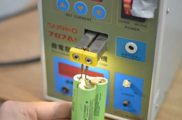 Paso 4: Iniciar caliente pegado y las células de soldadura por puntos
