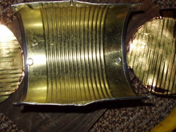 firt corta una lata sobre por la mitad. Luego doblar la over.in el siguiente paso le mostrará cómo hacer que las paredes del lado del filo.
