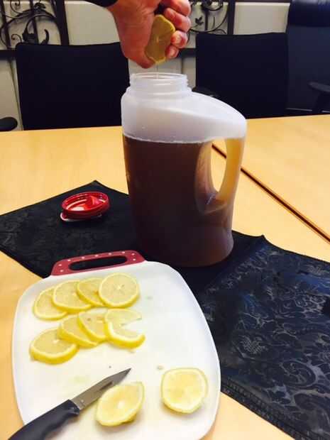La gota este limón la mitad dentro de la jarra si lo desea.