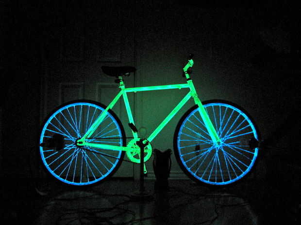 Si usted quiere hacer la moto aún más brillante y aún más... usted puede invertir en luz negra LED tiras para colocar en el marco de la bicicleta. Ahora eso sería genial, y no tiene que preocuparse por la decoloración del resplandor!