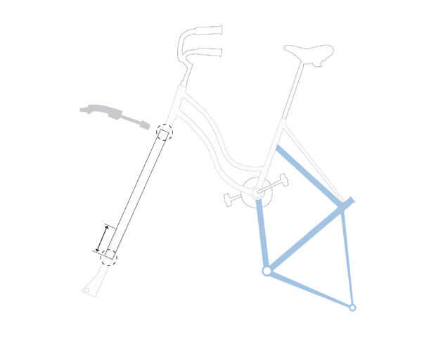 Inserta el tubo de acero entre las partes separadas de la horquilla de la bicicleta para mujeres, y destacan todo junto. El tubo y las barras de la horquilla se deben sobreponer un poco para las conexiones sean más fuertes. También debes añadir un trozo de metal transversal justo por encima de la rueda, como se ve en la foto del paso siguiente, para ejecuta la nueva horquilla.
