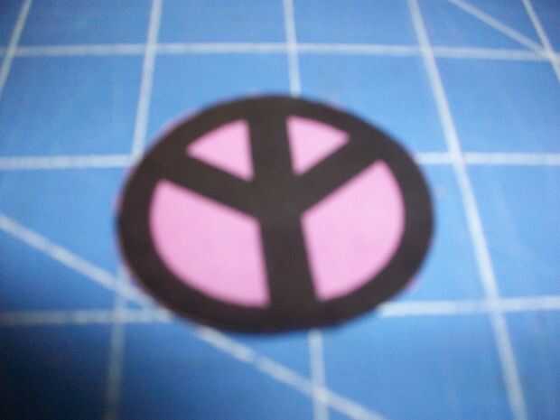 cuadro 1: necesita salir y encontrar una imagen en la red, copia y pega en word (o cualquier otro programa como él) y cambiar si es necesario. Luego imprimir! Mina parece divertido becase que accidentalmente impreso en papel púrpura. Así que después de haber grabado lo corte hacia fuera. No hay ninguna razón para cortar el interior hacia fuera. Como los interiores del signo de la paz.