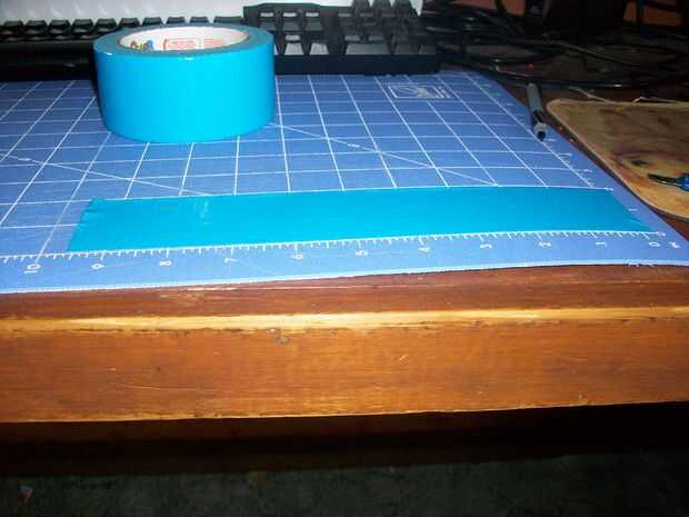 cuadro 5: añadimos otro trozo de cinta. Mantenga la cinta de sumadora y bancos y agregando otra pieza hasta llegar a la última pieza que pones en dónde está a 7 1/2 pulgadas. Añadir una pieza más y doblar que más de uno para que tenga un trozo de cinta del conducto es de 7 1/2 pulgadas de largo.