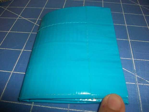 cuadro 2: tomar una pieza y la línea hasta el borde con la parte inferior de la cartera y pegar el otro lado de la cartera con el resto de la cinta. Una vez que tienes abierto conectado dos lados con los dedos como en la imagen y doblar la cinta sobre el borde y pegarlo en el interior. Hacerlo en el otro lado para que tengas un monedero cerrado!