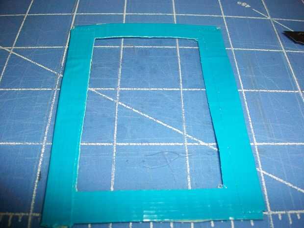 cuadro 1: tomar la tela y el centro de cualquier tarjeta usas en él. Utilice un marcador y trace una línea alrededor de la tarjeta. (Asegúrese de que hacerlo en el lado opuesto de lo que usted quiere estar mirando hacia fuera). De tomar tu regla y exacto cuchillo y cortar un poco dentro de las líneas de eso. Asegúrese de que usted corte en bastante que es un poco menos tan ancha como un pedazo de cinta de embalaje.