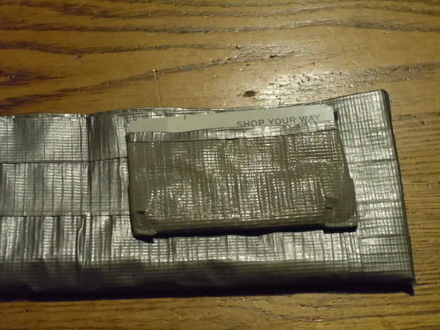 6. corte un poco la raja en la tira de cinta adhesiva para que la tarjeta puede ir.
