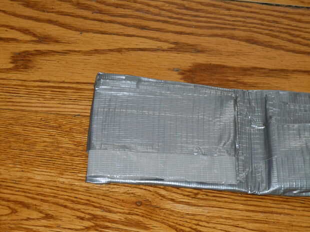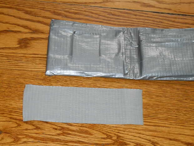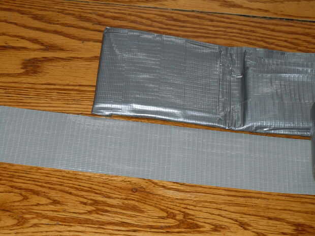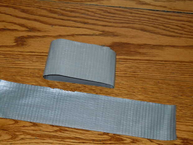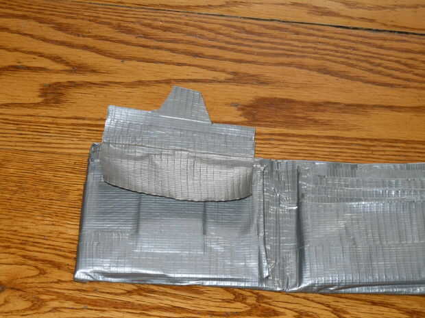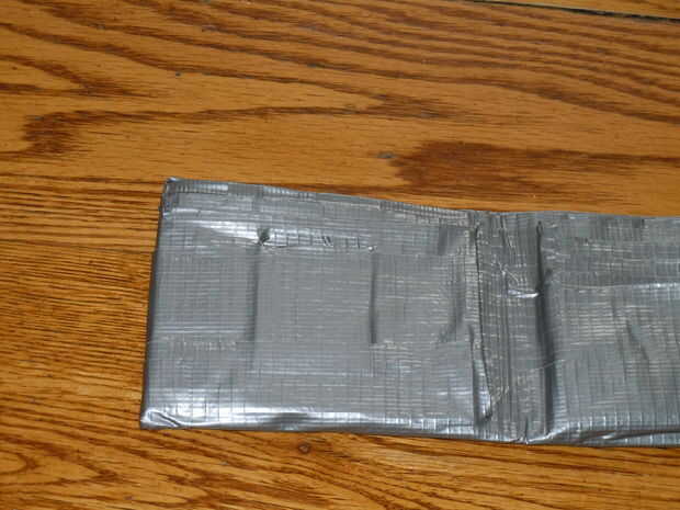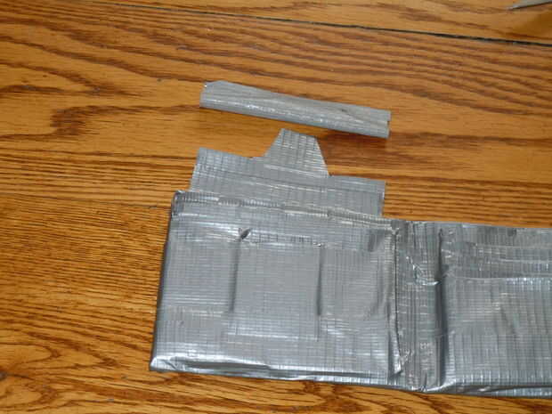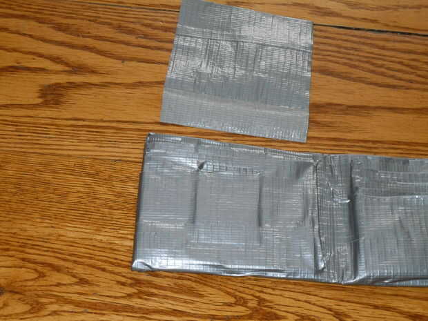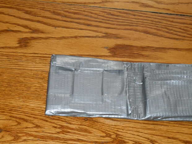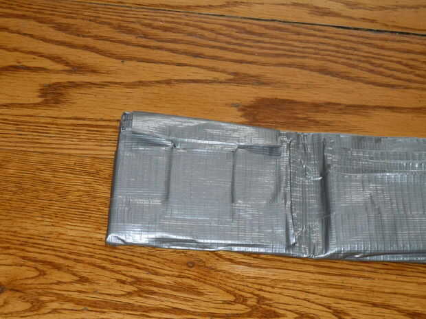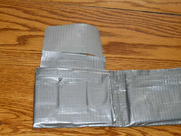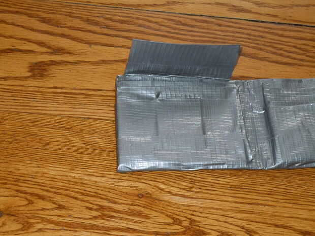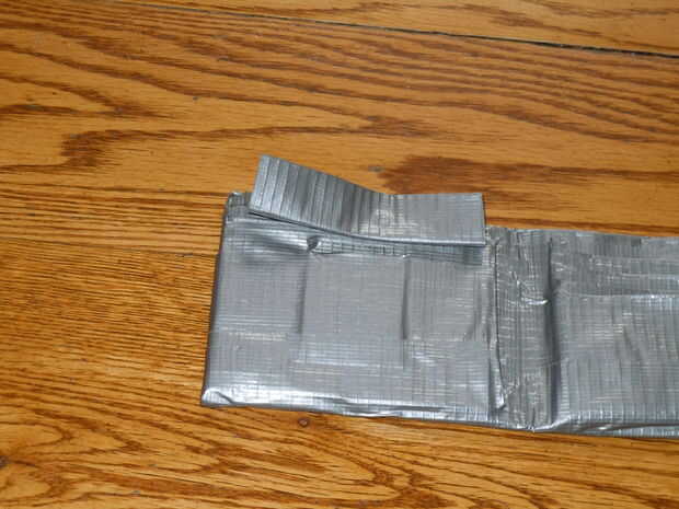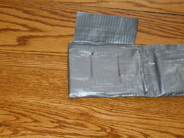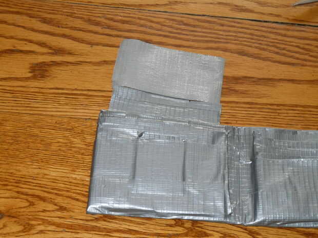 1. obtener una tira larga de cinta del conducto y hacer un lop que es aproximadamente la mitad de la longitud de la cartera,