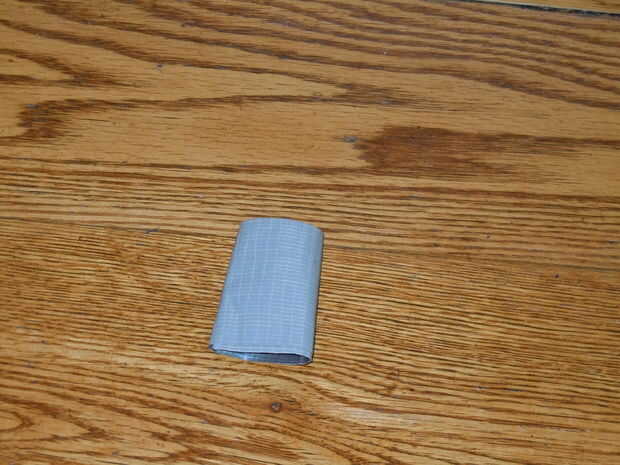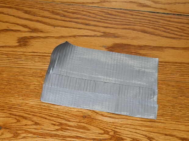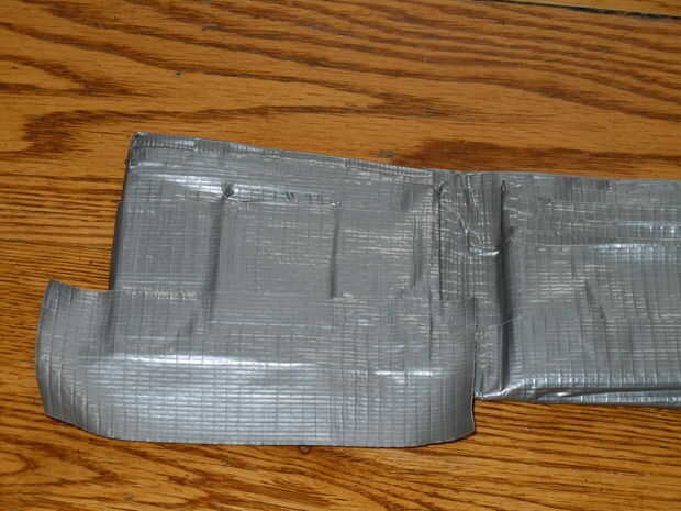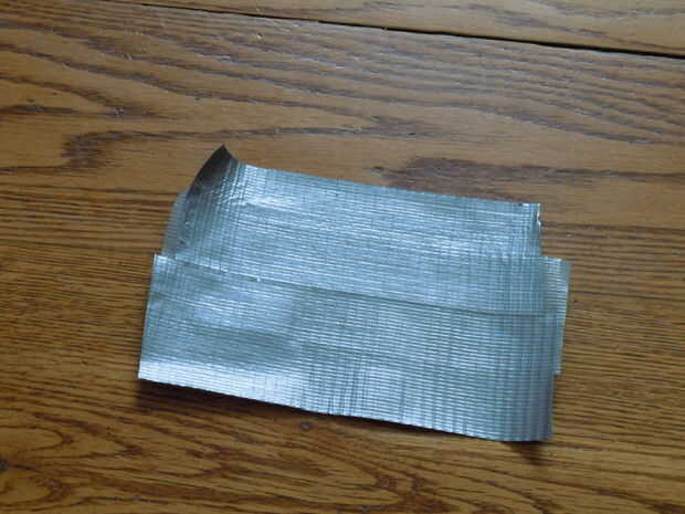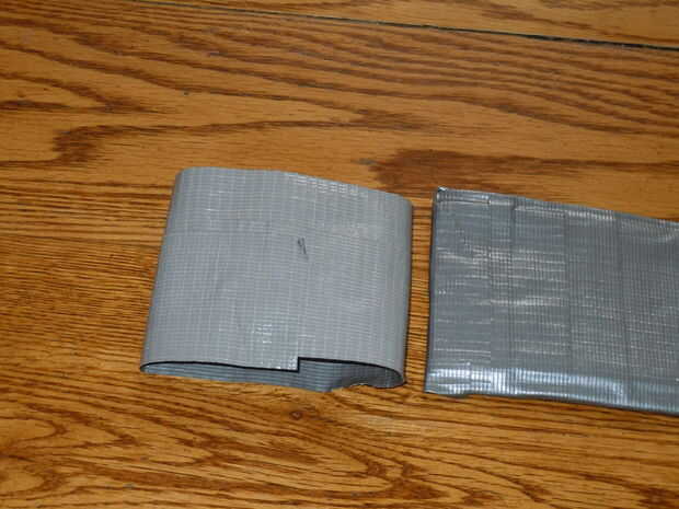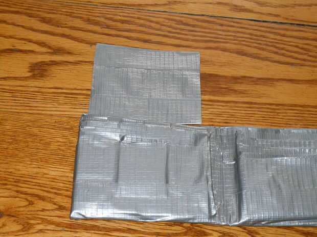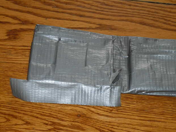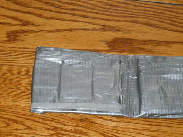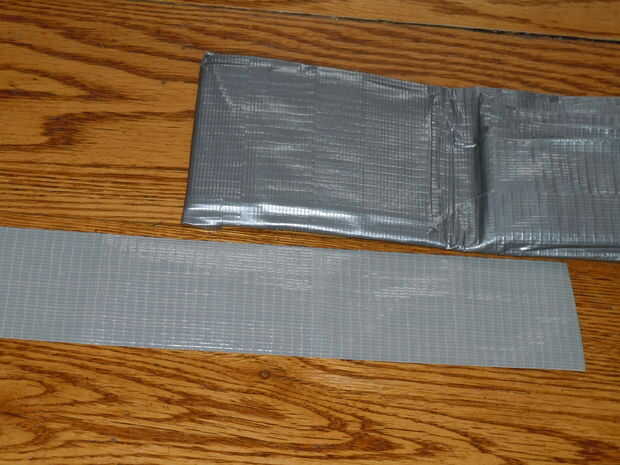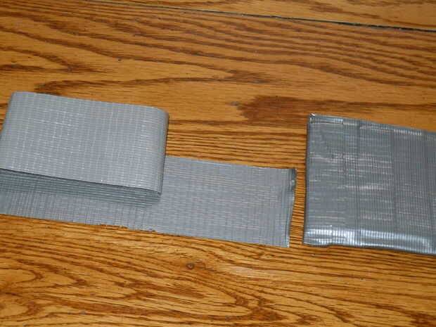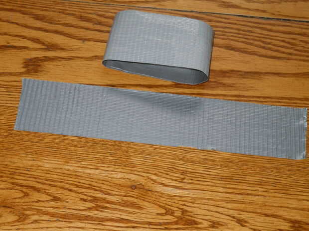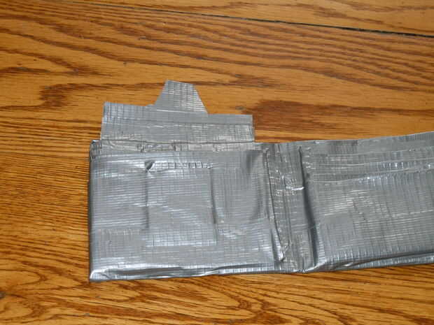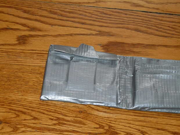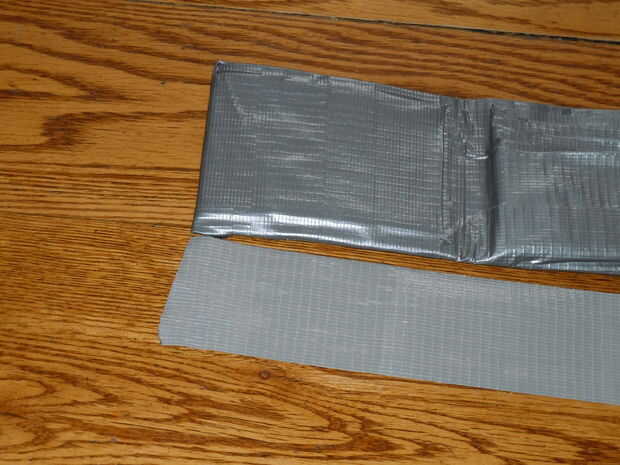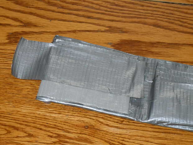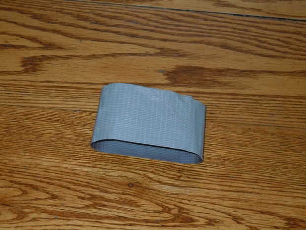 1. obtener una tira larga de cinta del conducto y hacer un lop que es aproximadamente la mitad de la longitud de la cartera,