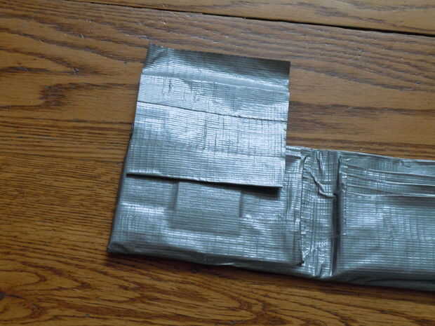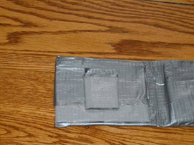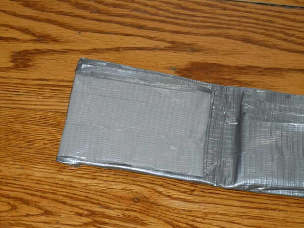5. colocar el bolsillo grande en la cartera y cubrir el pegajoso con la cinta del conducto, pero parada en una tira.