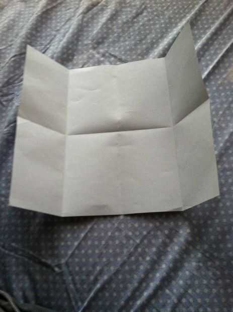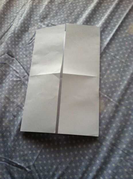 Aquí, solo tienes que doblar el papel (tipo hamburguesa). Luego, despliegue y pliegue vertical. A continuación, obtener ambos lados y doblar en el pliegue y desdoblar.
