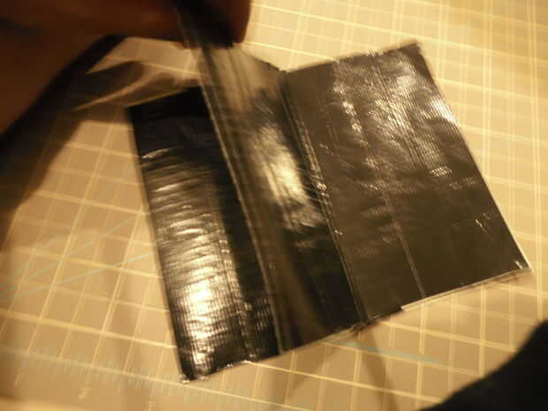 -Tomar una tira de cinta y ponerla la mitad sobre las 2 piezas que parece una sola pieza.