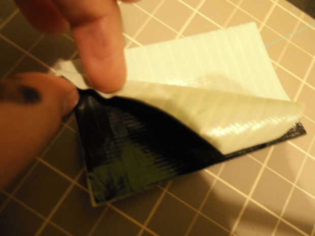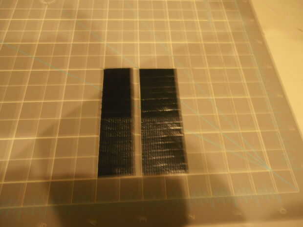 -Tomar la otra tira y alinee con la pieza que acaba de realizar sobre la parte pegajosa.