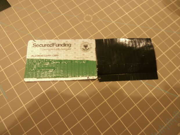 ~ Tomar una tira y colocarlo sobre la pieza que acaba de hacer por lo que es ligeramente más grande que la tarjeta de crédito