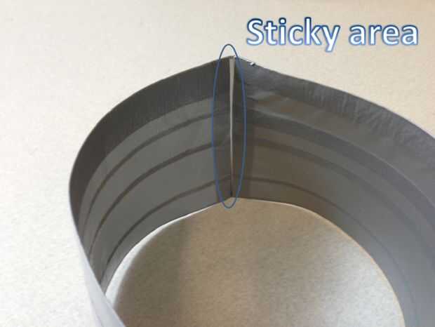 Habrá una zona pegajosa en el interior de las dos costuras que acaba de crear. Para evitar facturas se adhiera a esta, poner una estrecha franja de cinta 3.5" de largo a lo largo de la zona pegajosa.