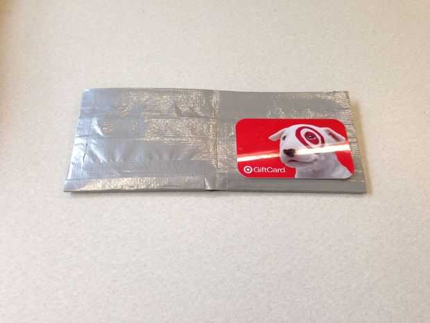 Empezar colocando una media tamaño tarjeta en una mitad de la cartera, para que pueda obtener una comprensión de lo que el bolsillo se necesita cubrir. Una tarjeta de crédito o de regalo típico es de 3,5 "x 2".