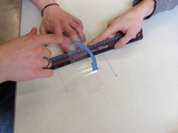 Una tira larga de cinta del rodillo, cuidado de no tocar más que los bordes del rasgón. Las huellas dactilares hará la 'ventana' nublado. Con cuidado dobla la cinta a lo largo. Puede utilizar una regla para expulsar las burbujas de aire a medida que avanza. Una segunda persona es útil para dicho proceso.