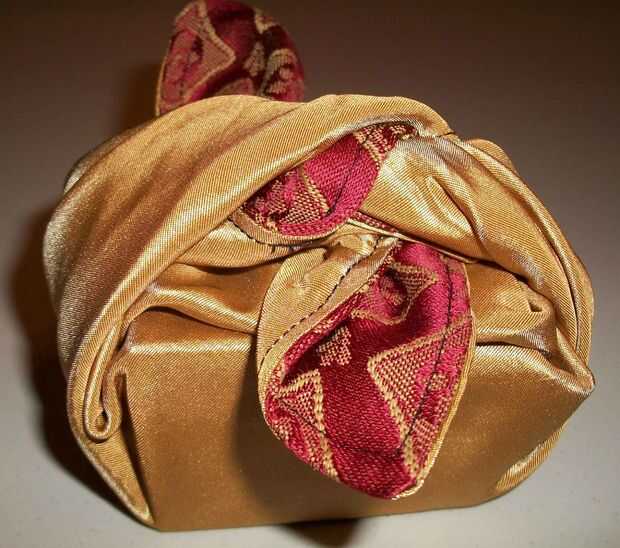 Mina envuelvo en tela furoshiki para un toque elegante final.