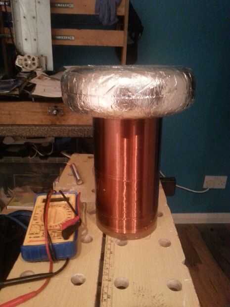 Me gustaría mencionar aquí a (porque otra vez, me esforcé por encontrar este simple bit de información que generalmente se omite en estos cómo de) que el alambre superior del secundario se conecta a la carga superior y el alambre inferior se conecta a su Polo de tierra no tierra sí mismo. He leído que esto no es una buena idea como la tensión se acumula en el cable de tierra de la red la chispa y provocar un incendio. Así que encontrar algo metálico, como un poste (o poste de la cama, pero nota hoyo el metal - no que lo hice...) y conectar allí. Esto te dará buenas larga chispas!