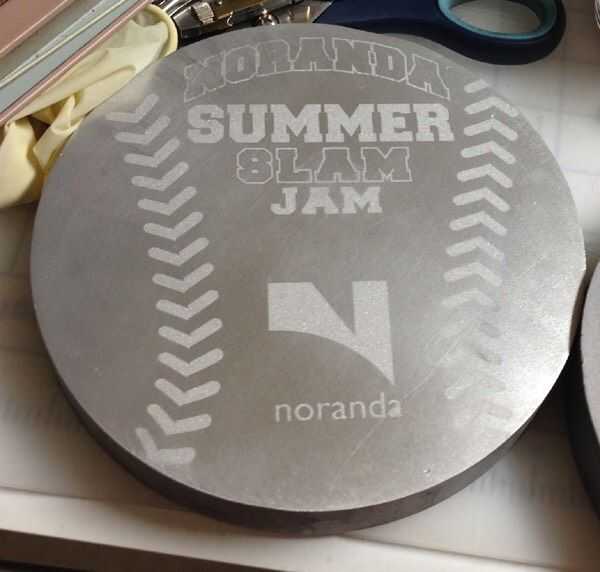 No saber qué chorreo de arena harían en el aluminio, he probado una pieza plana. Yo quería el softbol a ser blanco y la imagen más oscura, revirtió la plantilla.