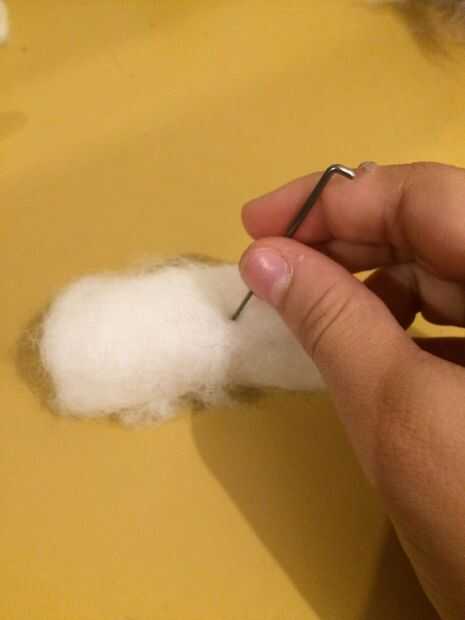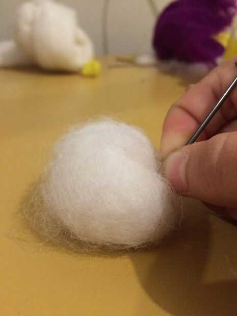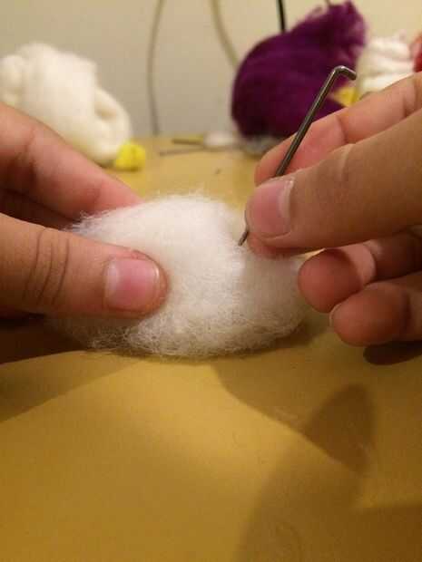Luego empezar a meter la aguja de fieltrar en el rollo de lana para empezar a formarlo. Cuanto más usted poke lo que tendrán más difícil y mejor. Haciendo la lana floja pierde su forma y será imposible esculpir. Tómese su tiempo y todo estará bien.