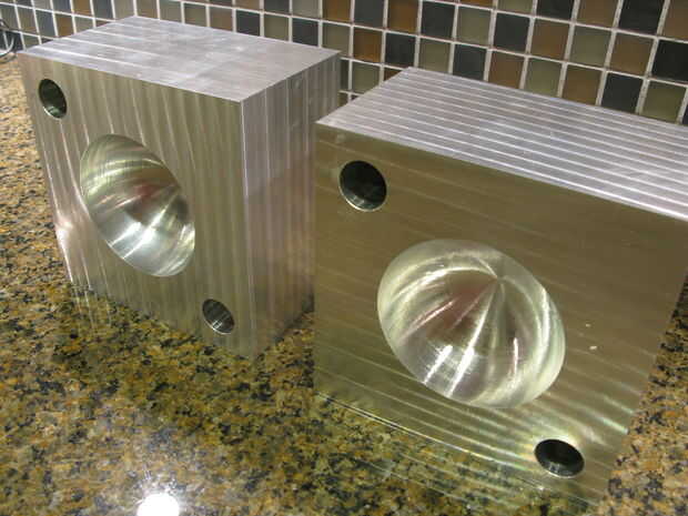 El modelo básico es fácil: usar AutoCAD o su equivalente para el bloque original del modelo, hacer una esfera de diámetro apropiado y restar uno del otro. Esto deja un bloque con un hemisferio cortado.