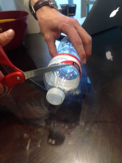 Corta dos pulgadas desde la parte superior de una botella de agua.