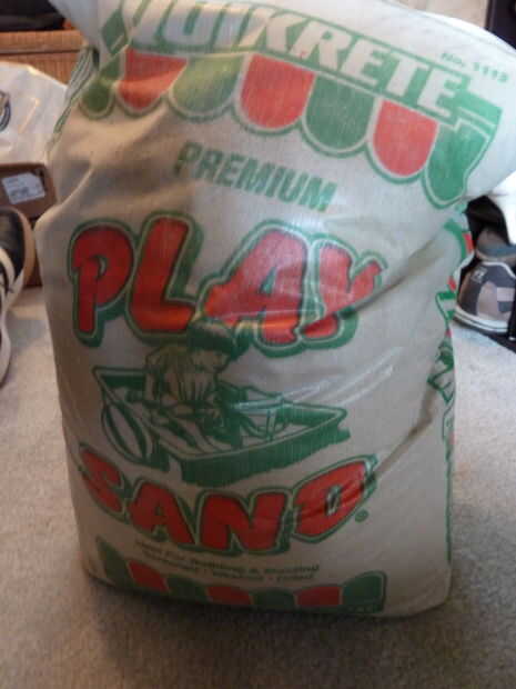 -bolsa 50# de arena o quickrete funcionaría si quieres una bola más densa, más difícil ($3,50 para juego de arena en The home depot)