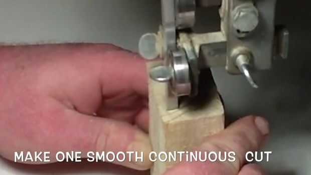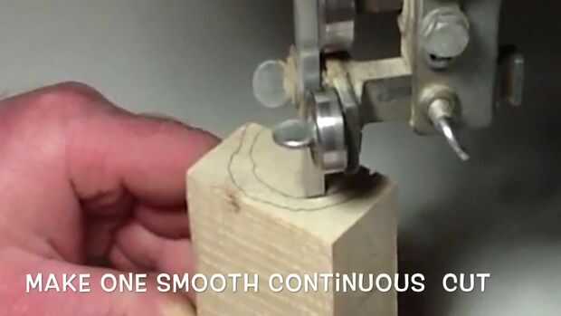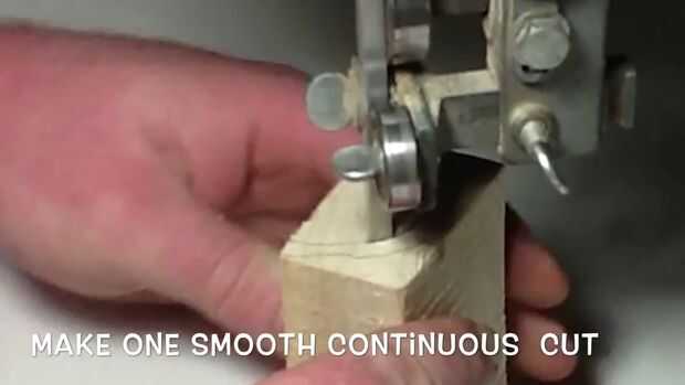 Y ahora con su sierra de cinta corte en la línea tan limpio como sea posible haciendo el corte en un solo paso suave en la línea de