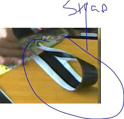 Cubrir las piezas que se extiende de las correas con negro. Superponer borde superior de la aleta por 1/4 de pulgada. Ajuste las correas por lo que son incluso.
