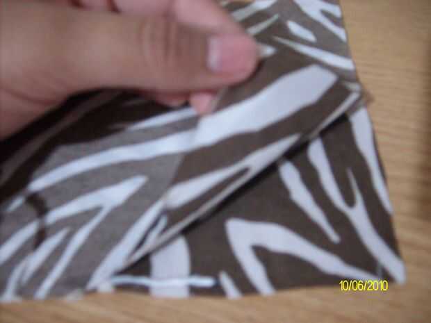 Con nuestras marcas de cuatro lápiz en su lugar y nuestra tela todavía doblado encima, ahora estamos listos para comenzar a usar nuestro líquido puntada para unir a la tela. Empezando por el lado de la tela que se pliega, empezar a pegar por el borde hasta llegar a la marca de lápiz. No pegar más allá de su marca. Si lo haces, limpie rápidamente el exceso de pegamento con un q-Tip o con los dedos. Utilice sus dedos para pat hacia abajo la tela y colocar el pegamento.