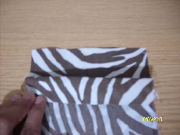 Cuando su seco, la tela debe parecerse a la imagen. Cuando uno de los lados se pliegan, se puede ver que ahora tienen una bolsa.