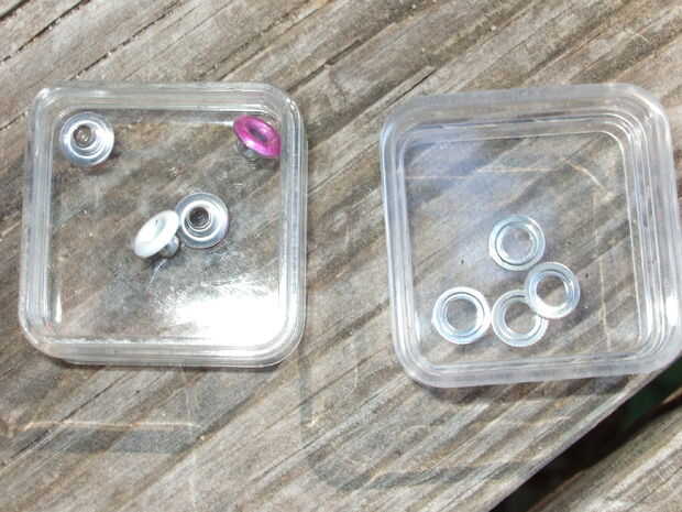 Este es un cierre para arriba de la foto de los ojales antes de ponerlos en las bolsas.