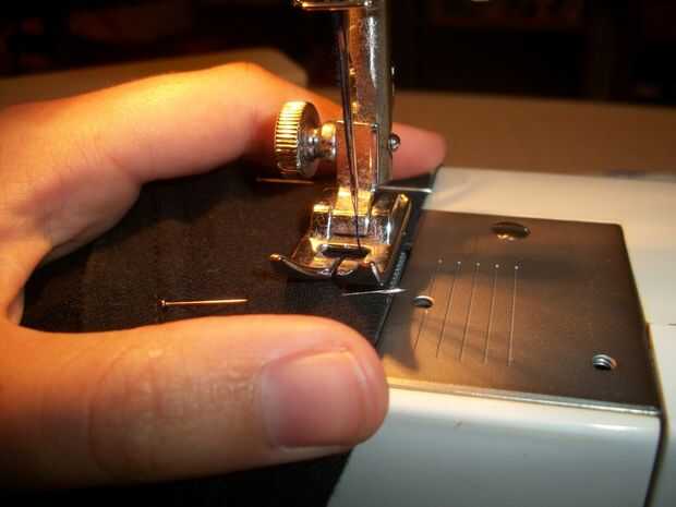 Paso 2: usando un hilo de su elección (he utilizado una semi que empareja, pero puede utilizar un color contrastante para la diversión), coser los dobladillos a lo largo del borde de la manga. Tratar de mantener el borde doblado, alineado con el borde del prensatelas. En este caso, usé un tipo zig-zag de puntada ya que evita el deshilachado de la tela y es agradable y fuerte, de tal modo reforzando las manijas.