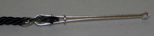 ahora obtener su pin de seguridad y rosca el cable sobre ella, o utilice el enhebrador como yo he hilo esto a través de la abertura que has hecho anteriormente en la parte superior de la bolsa. ajustar a la longitud te gusta y luego unir los 2 extremos y corta el cable restante.