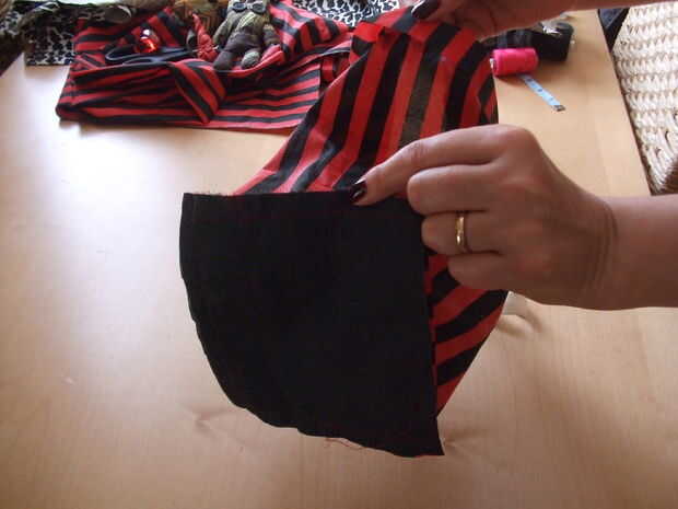 Hacemos exactamente lo mismo para la guarnición. Hemos añadido un lazo de cinta pequeña en la costura.