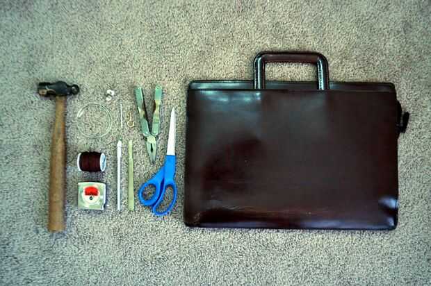-Cartera de cuero. He comprado de una tienda local por sólo $2. (1 maletín hace 2 bolsas de herramienta)