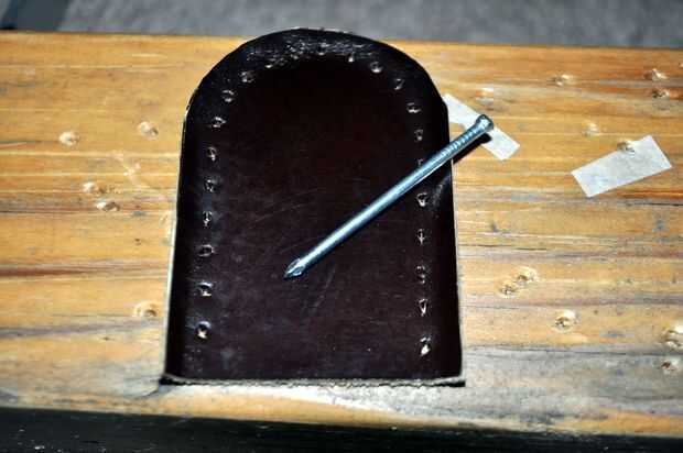 A continuación, tomar el martillo y clavo y comenzar perforando los agujeros a los lados y redondeado parte inferior de los paneles (ver Fig. 2). Los agujeros deben ser aproximadamente 1/4 de pulgada lejos del borde y 1/4 de pulgada una de otra.