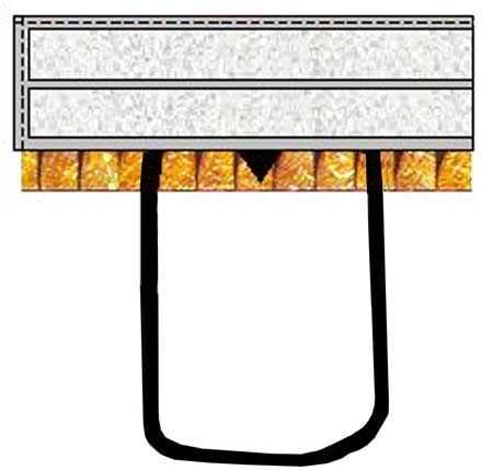 Clavija juntos la sección superior de la bolsa en el borde superior de la bolsa, derecho contra derecho y emparejar las juntas en ambas piezas. Usando una costura 1⁄4in, coser todo alrededor de la parte superior de la bolsa; Presione hasta que los bordes de la guata a tope para evitar una combinación voluminosa. Véase la figura 17.