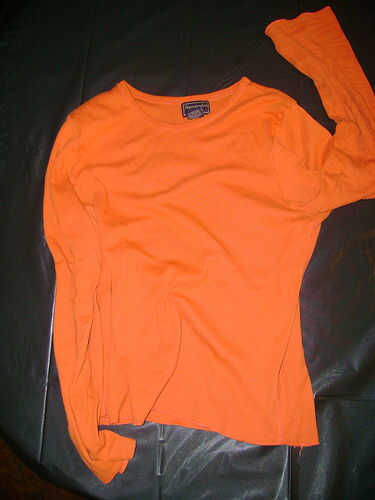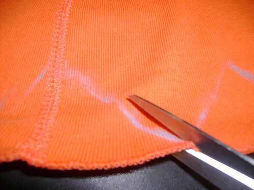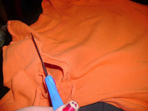5. Si está trabajando con una camisa de manga larga, corte las mangas por debajo de la costura.