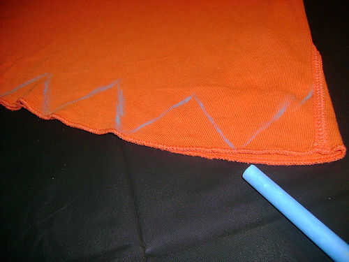 3. dibuje un borde serrado con tiza, con punto central marcado por la primera "v".