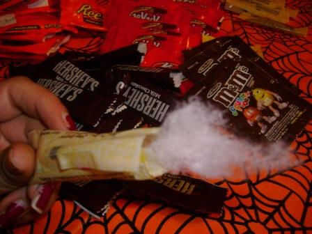 1. abrir envoltorios de golosinas y saque el contenido. (Guardar el caramelo en Ziplocs para todos tus amigos golosa).