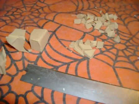 3. pegar pedacitos de manzana pintado con pegamento e6000.