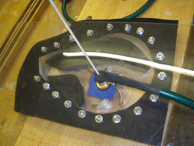 6) para la entrada use un pedazo de tubo interno de la bicicleta y prender un orificio muy pequeño en para el eje motor