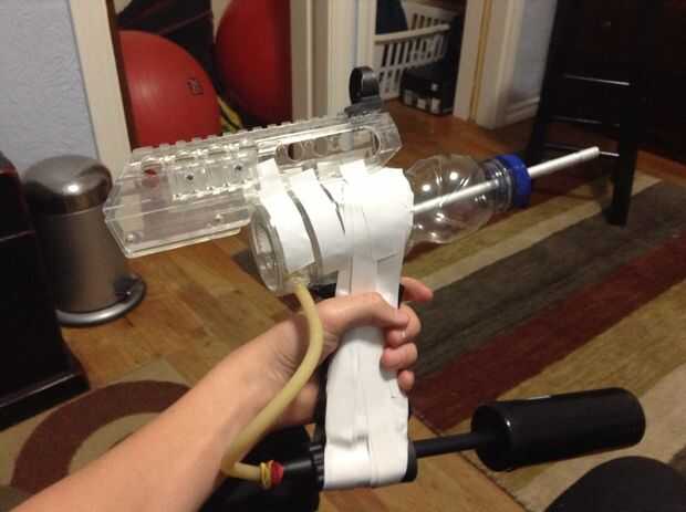 Si ya no has notado este diseño se puede utilizar también como una pistola de agua pero luego tendría que poner la bomba ontop de la pistola para que agua sin fugas en. También puede modificar su arma dándole vistas o cinta camo especial, heres una foto mía...