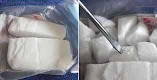 Tomar el hielo seco y dividirla en halfso las dos piezas coinciden con unos de otros. Luego tomar el destornillador y hacer un agujero de media pulgada en ambos de sus ladrillos de hielo seco por lo que cuando te los pones encima unos de otros debe hacer un agujero de una pulgada.