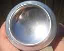 Corte un orificio de tamaño de níquel en la parte inferior de la lata y colocarlo para que puedan ver en directo a través del agujero inferior y el orificio superior.