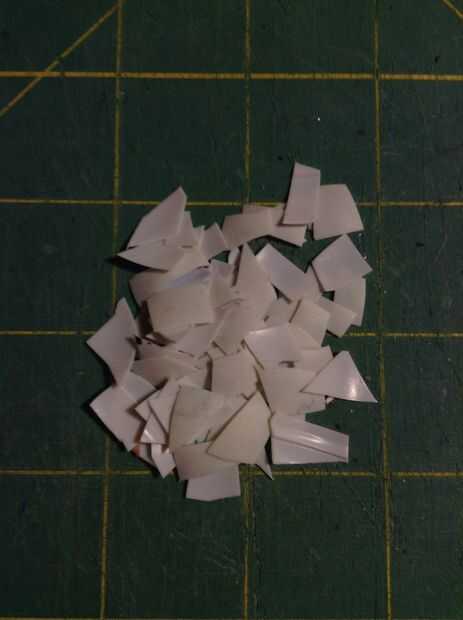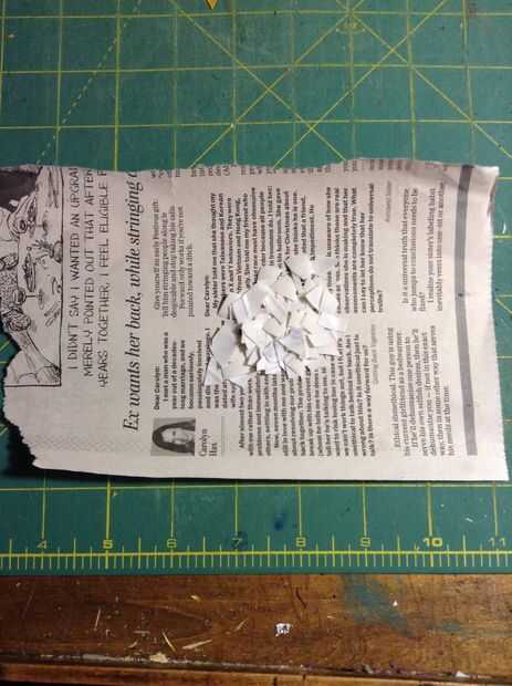 En primer lugar, corta hasta las pelotas de tenis de mesa en pequeños pedazos. Luego, colóquelo en su periódico.