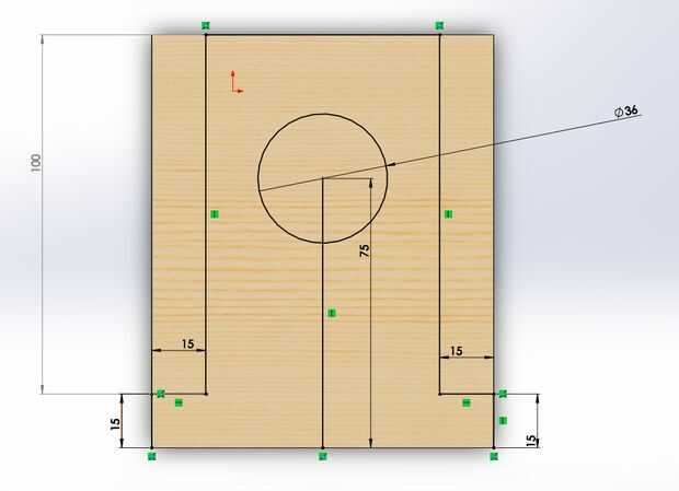 El soporte del motor se hace de tablero MDF de dos95 x 115 x 18 mm . Cortar siguiendo las instrucciones en los cuadros. El motor dado tiene un diámetro de 36mm, cambiar el diámetro requerido del orificio si el motor usado es diferente.